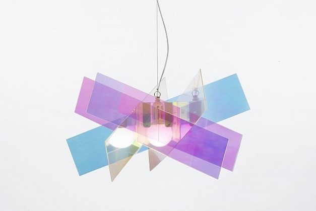 Suspension lamp featuring metal fitting with white coating. Lampshade of methacrylate, available in the following colours: e-flash, cromolite, gold, red, opaline white and in spectrall methacrylate.